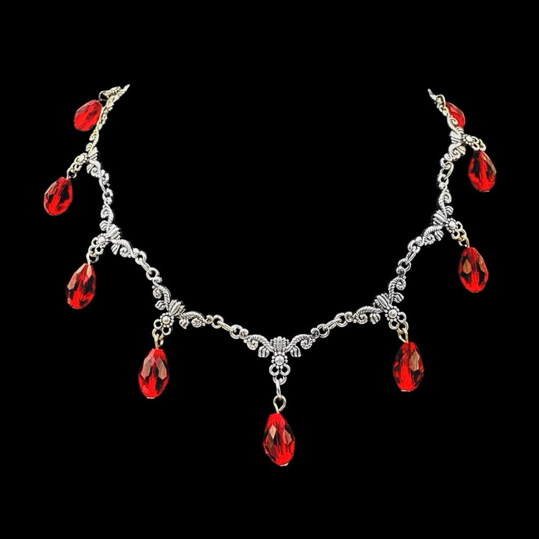 This choker is inspired by the dark tale of Carmilla, the original vampire who inspired the story of Dracula. Designed to evoke the eerie and seductive nature of the infamous vampire, the choker features an intricate design that appears as if blood is dripping from your neck, symbolizing the blood drained from her victims. Crafted with bold, gothic elegance, this piece captures the essence of Carmilla’s insatiable thirst and the chilling allure of the vampire mythos. Perfect for lovers of classic horror, dark fashion, or those who appreciate a unique, macabre touch to their accessories, this choker is a bold statement of both beauty and terror.