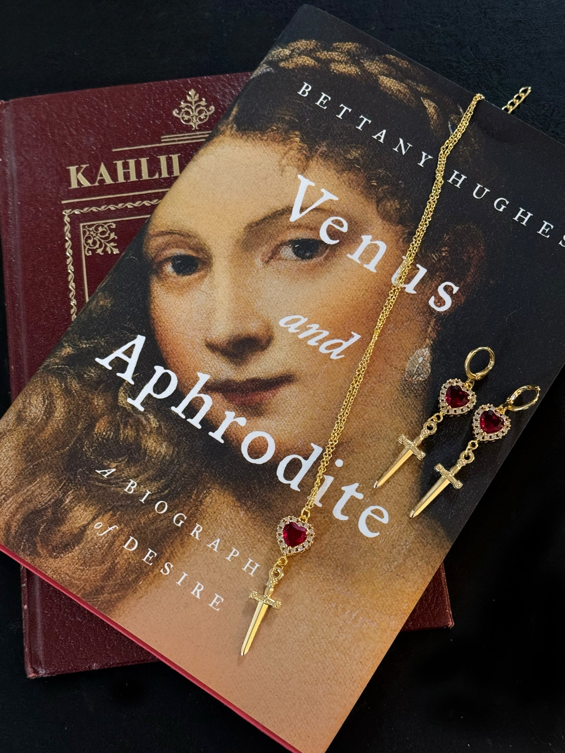 This Gold Heart Dagger Necklace is a tribute to the tragic love story of Romeo and Juliet, capturing the passion, heartache, and ultimate sacrifice of two star-crossed lovers. The intricately designed heart symbolizes the deep, eternal love shared between Juliet and Romeo, while the dagger represents the one Juliet used to end her life after discovering her true love's death. Perfect for those who hold a special place in their hearts for this iconic tale, the necklace serves as a beautiful and sorrowful tribute to one of the most enduring love stories ever told.