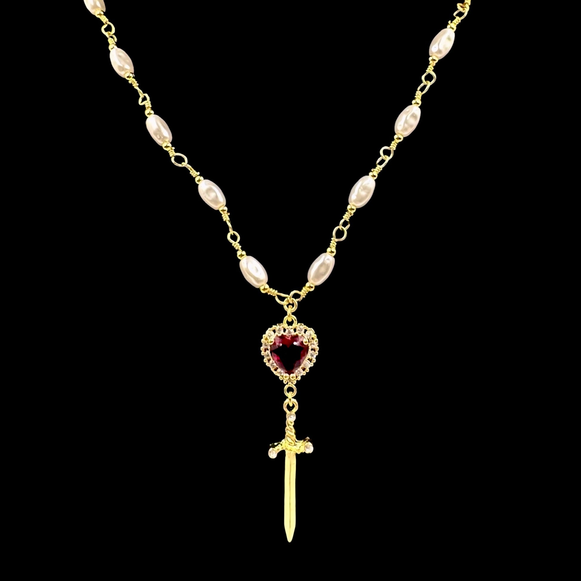 Gold Heart Dagger Pearl Choker