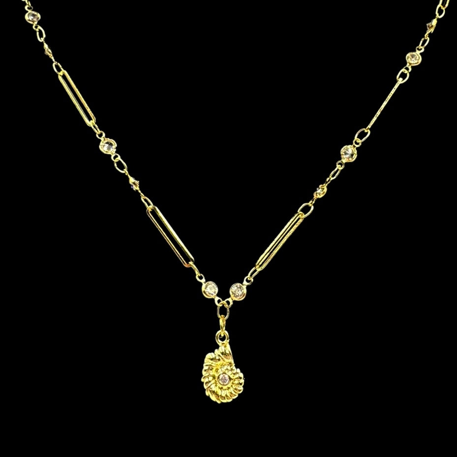 Unleash your inner sea witch with this captivating Mini Nautilus Shell Necklace. A delicate yet powerful piece inspired by the necklace Ursula used to steal Ariel’s voice. Hanging from a crystal-studded chain, the gold nautilus shell glimmers like a treasure pulled from the ocean's deepest secrets. Bold yet refined, it’s perfect for those who walk the line between myth and magic—whether you're summoning your siren spirit or embracing your inner enchantress.