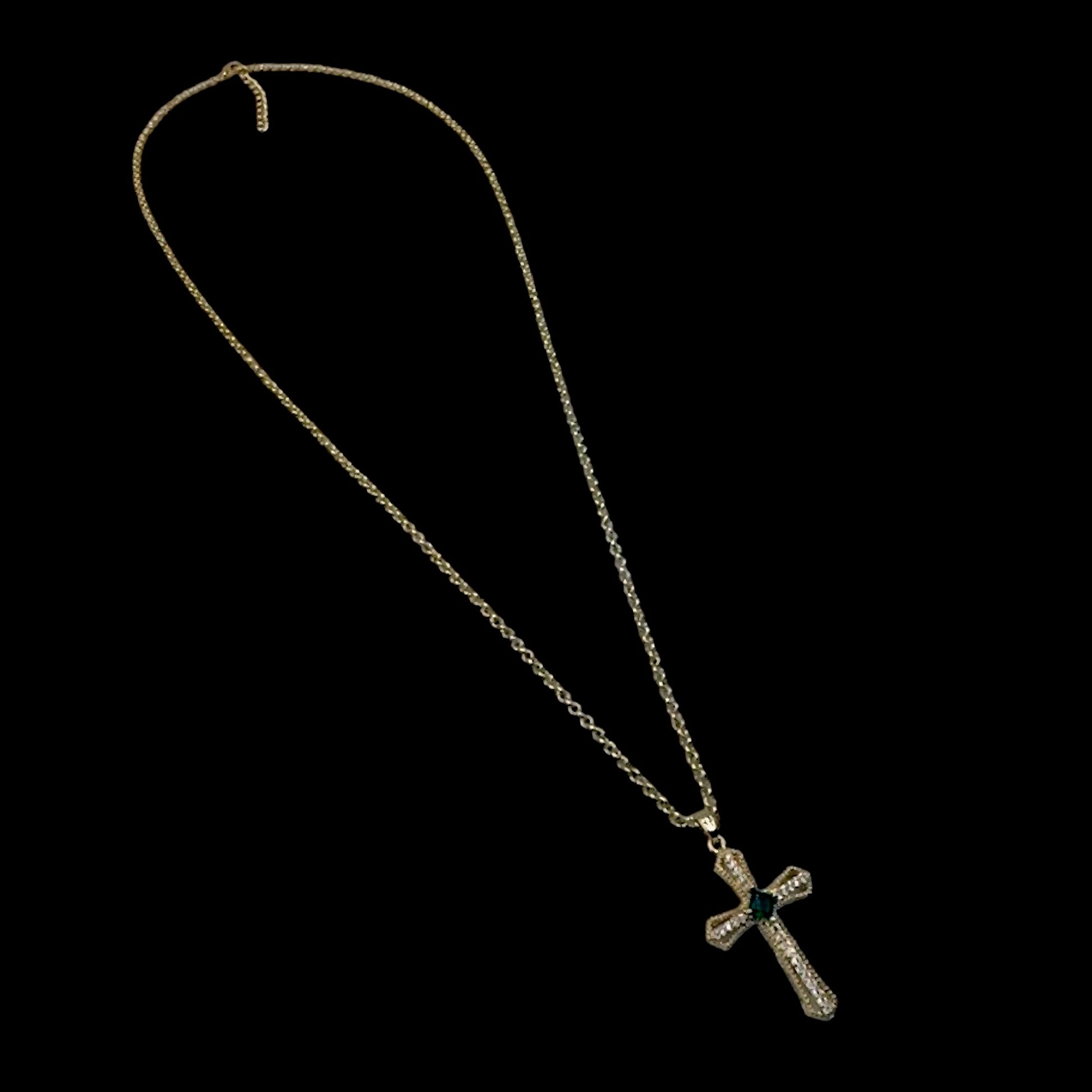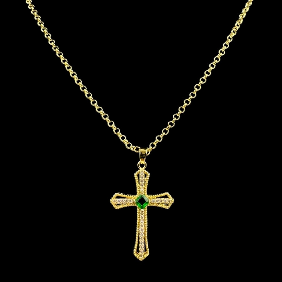 Rhombus Emerald Cross Necklace