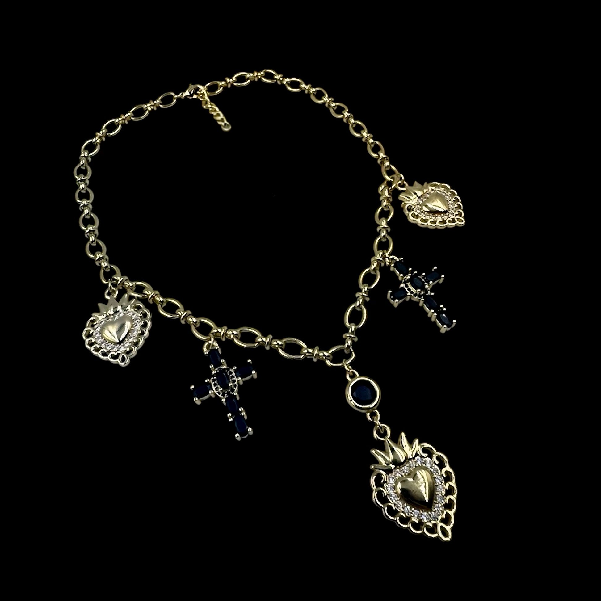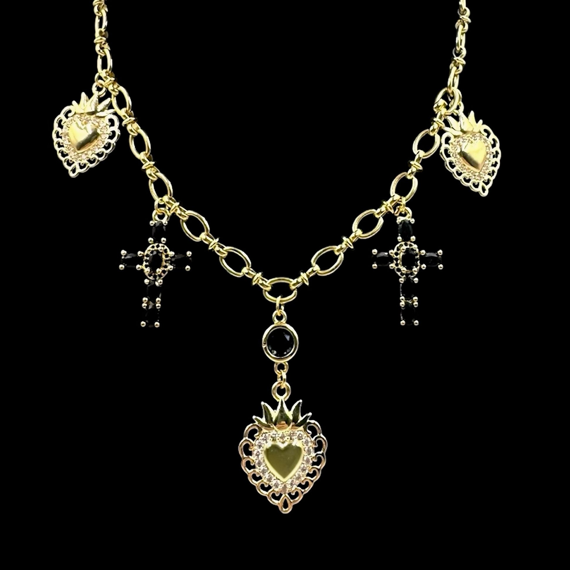 Sacred Heart Black Cross Charm Necklace